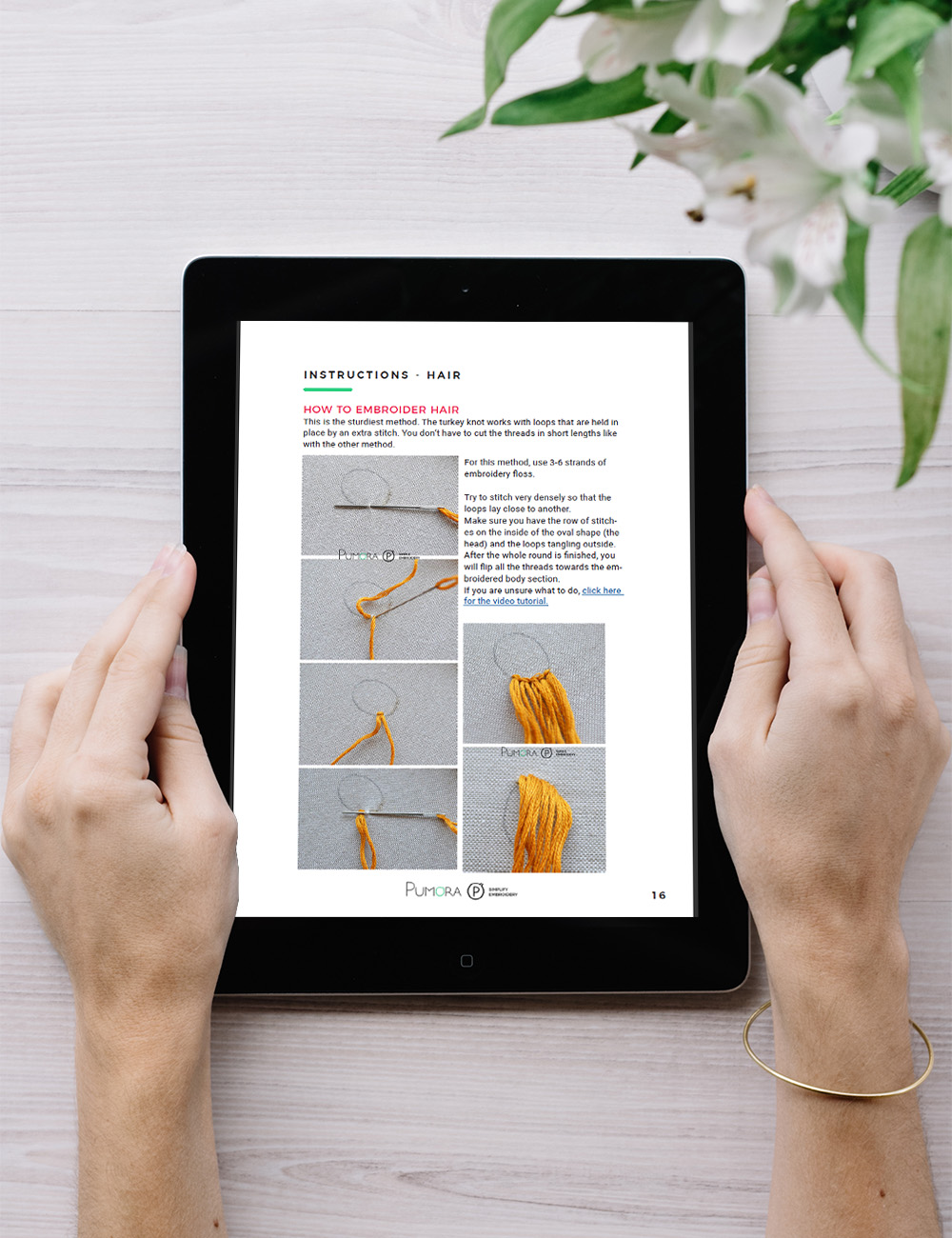 Included in this stitching pattern are the instructions for the design you see here and more. It contains the tools to truly personalize your embroidery and make it resemble you and your friend.